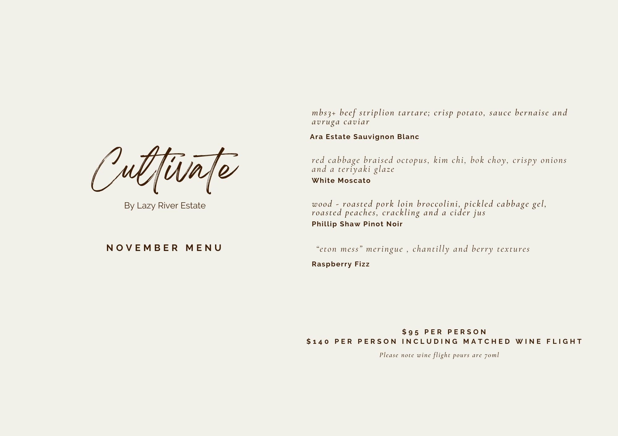 Introducing Cultivate at Lazy River Estate - an inspired dining experience, hosted once a week in the Lazy River Estate dining room, overlooking the Estate’s vines and manicured grounds.